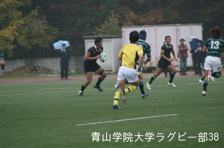 青学大は前半7分にHO大塚のトライ(WTB加藤のゴール)で先制すると、同学年の大塚に負けじとCTB久保山、WTB大口のルーキー2人がが立て続けにトライを奪う。前半33分に4つ目のトライ(ゴール)を奪ってからは、成城大のペースとなるがディフェンス陣が踏ん張り無失点で折り返す。
