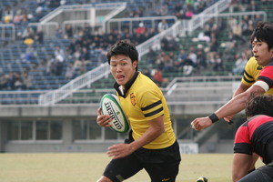 『成蹊大学戦を戦うにあたり、チームとしては勝利を信じ、自分たちのラグビーを最後までやりきるということを掲げ、同時に僕たち四年生としては後輩達に対抗戦Aグループの舞台を必ず残し、来年以降のチャレンジに繋げるという一心でゲームに臨みました。