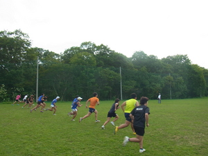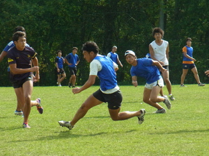 今日の練習では、体をほぐす為にタッチフットとフィットネスを行いました。