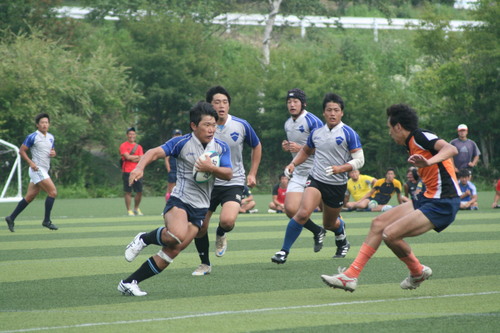 『今回の菅平合宿に入って始めての試合で、なおかつ、ジュニアのカテゴリーで数少ない試合のひとつということで上のカテゴリーに、少しでも近づけるようにチーム全体で心して試合に望みました。私は、後半にフォワードで出場しました。後半フォワードの目標は、オフェンスは常に順目に、向かって走る。ディフェンスは、ガード、ドッグのコールをする。全体としての目標はとにかく走ることでした。ディフェンス面でのノミネートがまだ、遅くポイントの近くを狙われた、ことが今回の反省点です。個人的には、タックルのミスが多かったのでもっと体を当てたいと思いました。オフェンスはキックオフリターンで毎回ミスを起こしてしまいましたが、その他のプレーではサポートをしっかりと行い、社会人を相手に今年やってきた、走る事を、実践できたとおもいます。合宿も始まったばかりで、ジュニアチームの試合はまだまだ幾つかあるので、良いところは継続して、反省点を少しでも改善して、今後に生かしていきたいと思いました。』