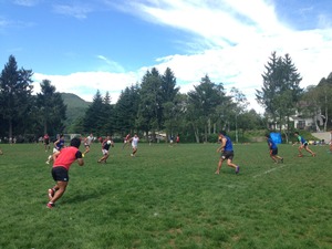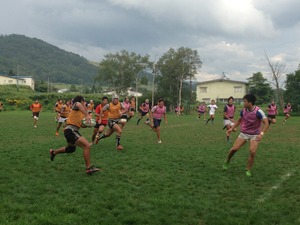 グラウンドをいっぱいに使い、臨機応変に対応してトライをとりきるにはどうしたらいいか、を考える練習となりました。
