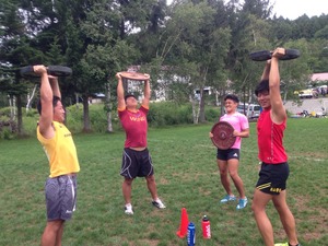午前中の練習では、ランメニューとパワートレーニングを行いました。