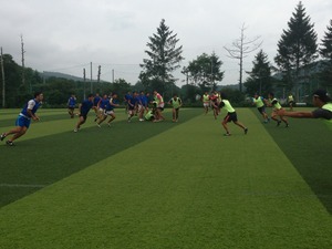 『合宿6日目は午前練習はサーキットとLSD、午後練習はアタックとディフェンスの確認とユニット練習を行いました。先日、専修大学との試合で各チーム課題が明確になったので次の試合に向けて修正したいと思います。また、目標の全国大学選手権出場を達成できるよう頑張っていきたいと思います。』