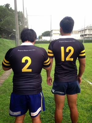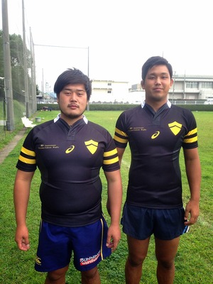 (90周年ジャージ着用・左より主将/HO林隼司、副主将/CTB谷山俊平)