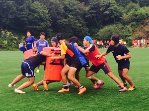 猪飼 「いつも温かいご声援ありがとうございます。午後の練習では、チームに関わらず同じ目標に向かって強化3次合宿の目的の一つであるチームスキル向上の目標のために、ブレイクダウンとアッタクディフェンスの練習をしました。ブレイクダウンスキルでは春からやってきた事の再確認、そしてレベルの向上が出来ました。アッタクディフェンスでは、各チーム東洋大学の試合の反省を活かし激しく行う事ができました。