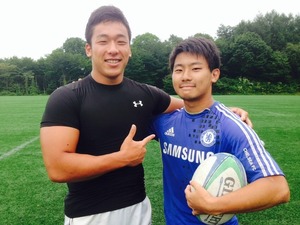 (写真左から:3年芦川学(PR/静岡聖光)、4年大庭慎也(FB/東福岡) )