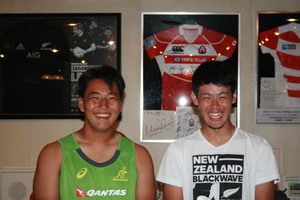 (写真左から:大津耀太郎(HO/青山学院高等部)、留奥元明(WTB/青山学院高等部))
