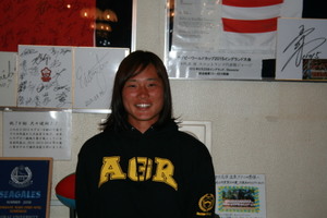 私は15人制で代表になりたいという目標があります。そうなると、相手になるのは外国人選手です。なので、日頃の練習を国内の女子と行うより男子選手と行うことが自分にとってプラスになると思ったので、女子部員を受け入れて下さるというAGRに入部したいと思いました。本当に、当たり前にはないこの環境に感謝しています。」