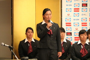 先日、明治会館にて8月9日よりアイルランドにて行われるW杯女子ラグビーの出場選手記者会見が行われ、弊部の江渕まこと(福岡/PR)が選出されました。