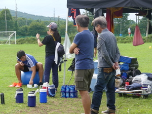 昨晩と午後練習前に降った雨のため、緑ヶ丘では見られない天然芝ならではの泥のしみがユニフォームに多く見受けられました。