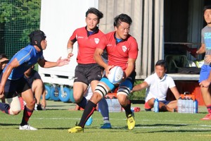 Bチームの今日の目標としては試合に勝つ意識を強く持ち、アタックを継続してトライを重ねること目標としました。しかし、ミスや不用意なキックなどでアタックを継続する事ができずタイトな戦いになってしまいましたが、なんとか勝ちきる事ができたことは良かったと思います。個人的には接点の面であたり負けること無く試合を進めていけたと思います。次の試合では今回上がった反省を修正して一人ひとりが勝つための最善の選択をおこない勝ちきりたいと思います。」
