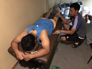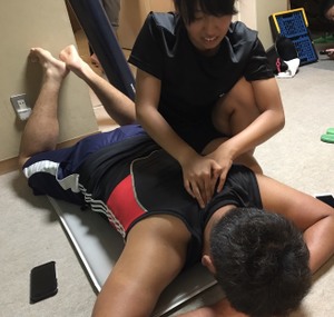 練習後のケアの風景です。