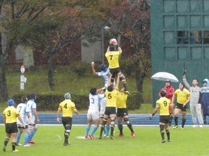 今回の試合では天候やグラウンド状況により、チーム本来のラグビーがあまりできませんでした。また両チームともミスが重なり、得点機を逃すシーンが多かったです。しかし非常にタイトなこの試合に勝ちきれたことは、今後の青山学院大学のレベルアップに繋がっていくと思います。チーム一丸となって試合に勝とうという気持ちが感じられた試合でした。