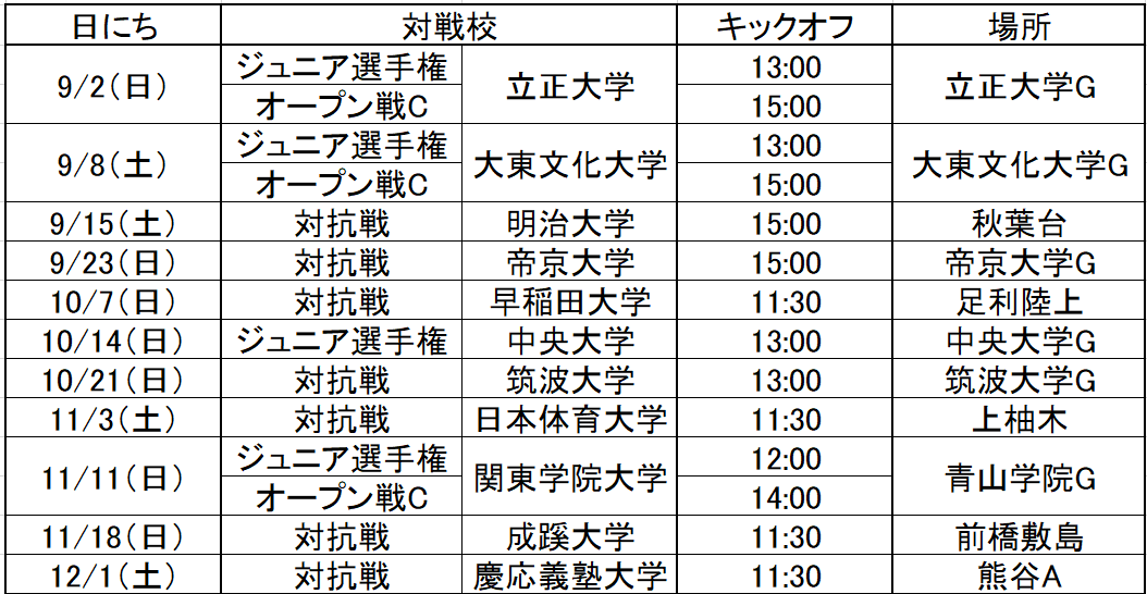 2018年度 秋季対抗戦・ジュニア選手権日程 2018/07/25 平素よりAGRの活動にご理解・ご尽力賜り誠にありがとうございます。 2018年度秋季対抗戦・ジュニア選手権の日程が決定いたしました。詳細は下記をご覧ください。 ※日にちや会場は変更になる場合がございます。 皆様のご来場、ご声援のほどよろしくお願いいたします。 » トピックス一覧
