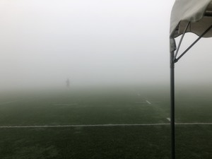濃霧の影響(下写真)でB戦の試合時間を大幅な縮小をしての開催となりましたが、B戦C戦ともに勝利を迎えることができました。