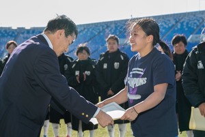 RKUラグビー龍ヶ崎GRACEと7-7で引き分けとなり、大会要項に従い抽選の結果、当初は横河武蔵野Artemi-Starsのみの優勝となりました。しかし日本協会主催の選手権大会であることが重視され、RKUラグビー龍ヶ崎GRACEと横河武蔵野Artemi-Starsの両チーム優勝へと変更になりました。さらに、弊部部員の津久井萌(SH/東農大二)がMVPに選ばれました。