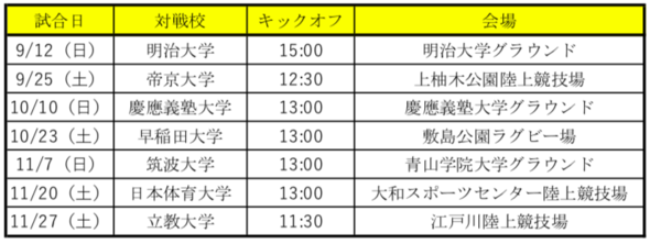 2021年度関東大学対抗戦Aグループの試合日程をお知らせいたします。