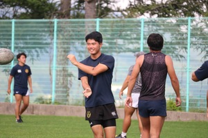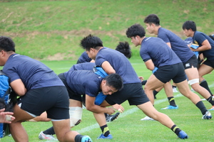 「平素より青山学院大学を応援していただきありがとうございます。今日のBチームの試合では、ボールを早く動かして外でゲインをきる、というイメージをもって試合に臨みました。いくつか外でビッグゲインを切ることができ、得点に結びつけることができました。明日の試合では、セットプレーの精度をあげて、合宿最終戦を勝利で締めくくりたいと思います。今後とも熱い声援を宜しくお願いします。」