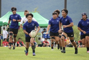 オープン戦では、前半先制トライを許してしまうもその後に青学もトライを返しました。
