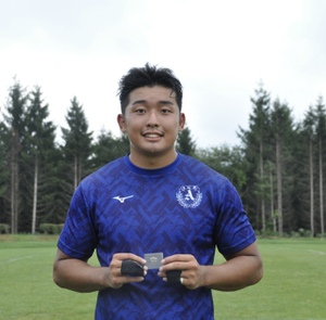 「平素よりAGRを応援していただきありがとうございます。今回の同志社大学戦では、過去2試合で上がった課題を修正することとフォーカスポイントを掲げて試合に臨みました。勝利することはできましたが、新たな課題が見つかったので対抗戦までに修正し、チームとして更なる成長を遂げられるように日々精進したいと思います。個人としては、掲げていた目標を遂行できたことが今回の結果につながったと思います。またこういった賞を頂けるように取り組みたいと思います。今後ともAGRの応援の方よろしくお願いいたします。」