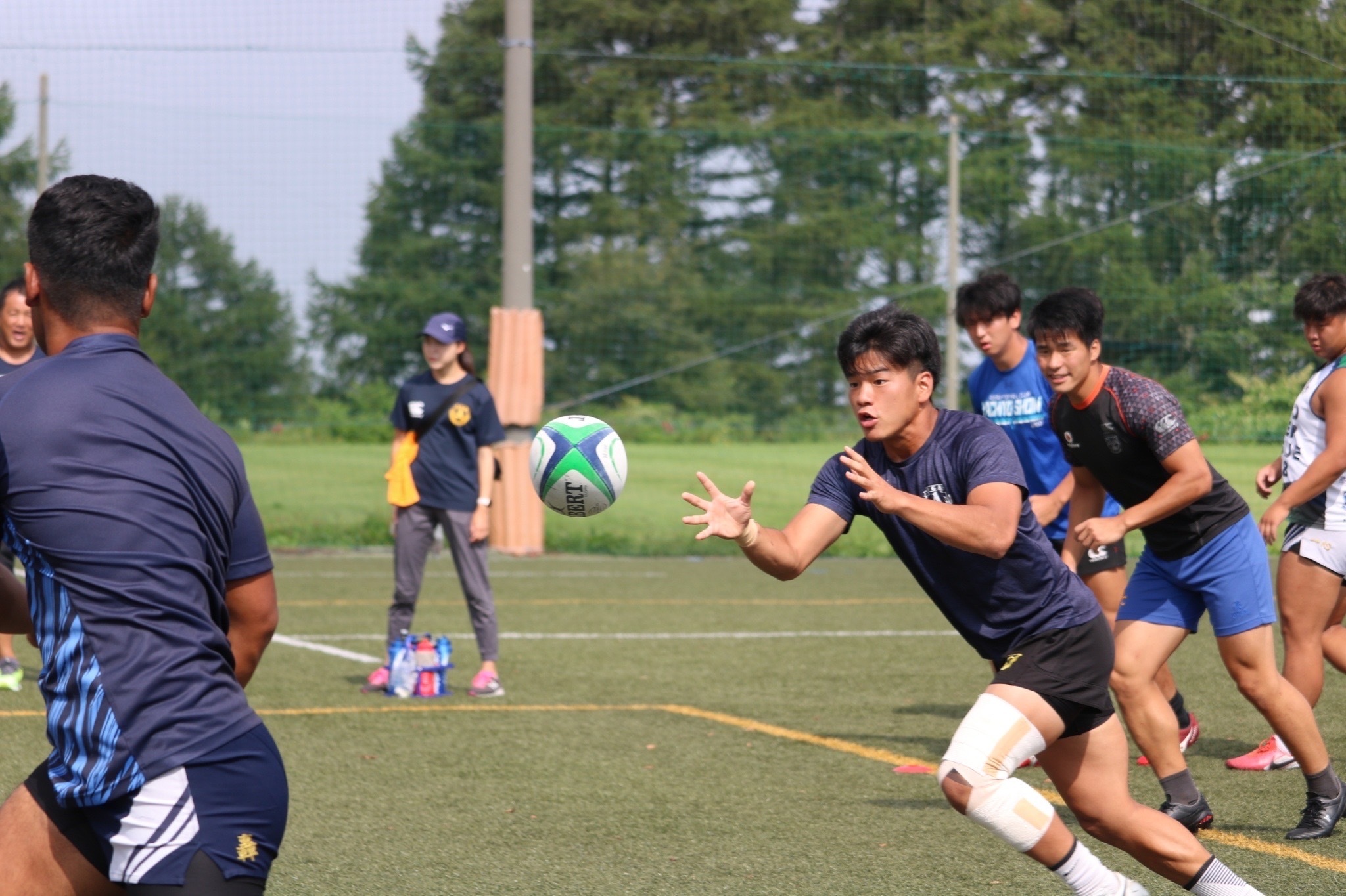 午前は、昨日の同志社大学との試合で課題に出たディフェンス強化を目的に、新たなシステムを導入、午後のユニット練習では、特にFWはセットプレーの修正・確認を時間をかけて行いました。