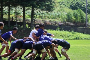 FW はスクラム合わせ・モールのヒットスピード向上練習を行い、BKでは龍谷大戦の課題として挙げられた、DFターンオーバーのスキル練習を行いました。