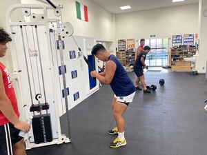 今日の午前中は、グラウンドでのユニット練習と菅平高原アリーナにてウエイトを行い、