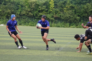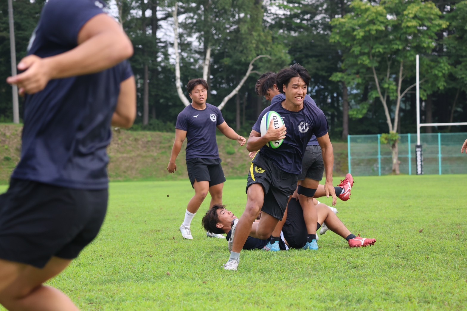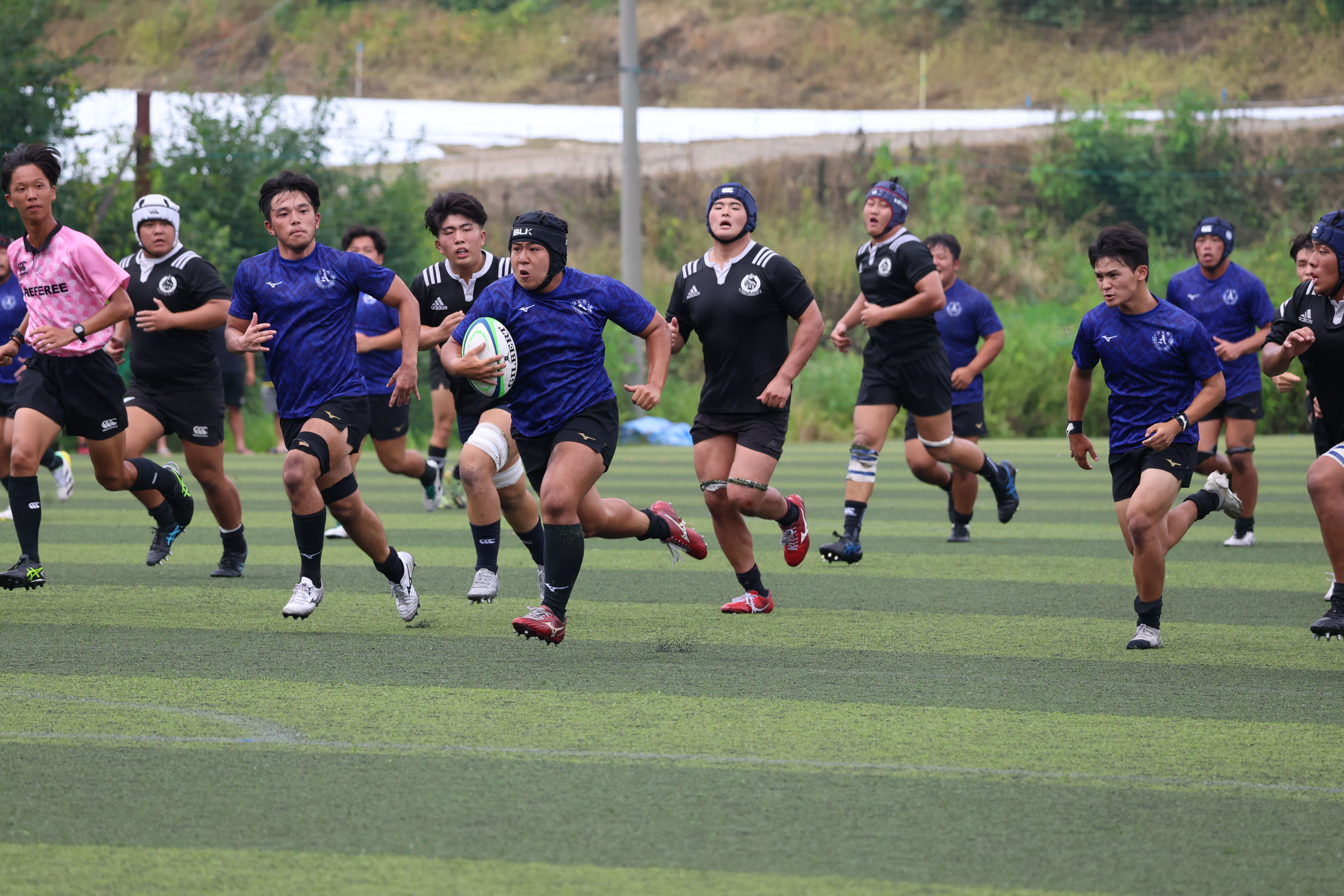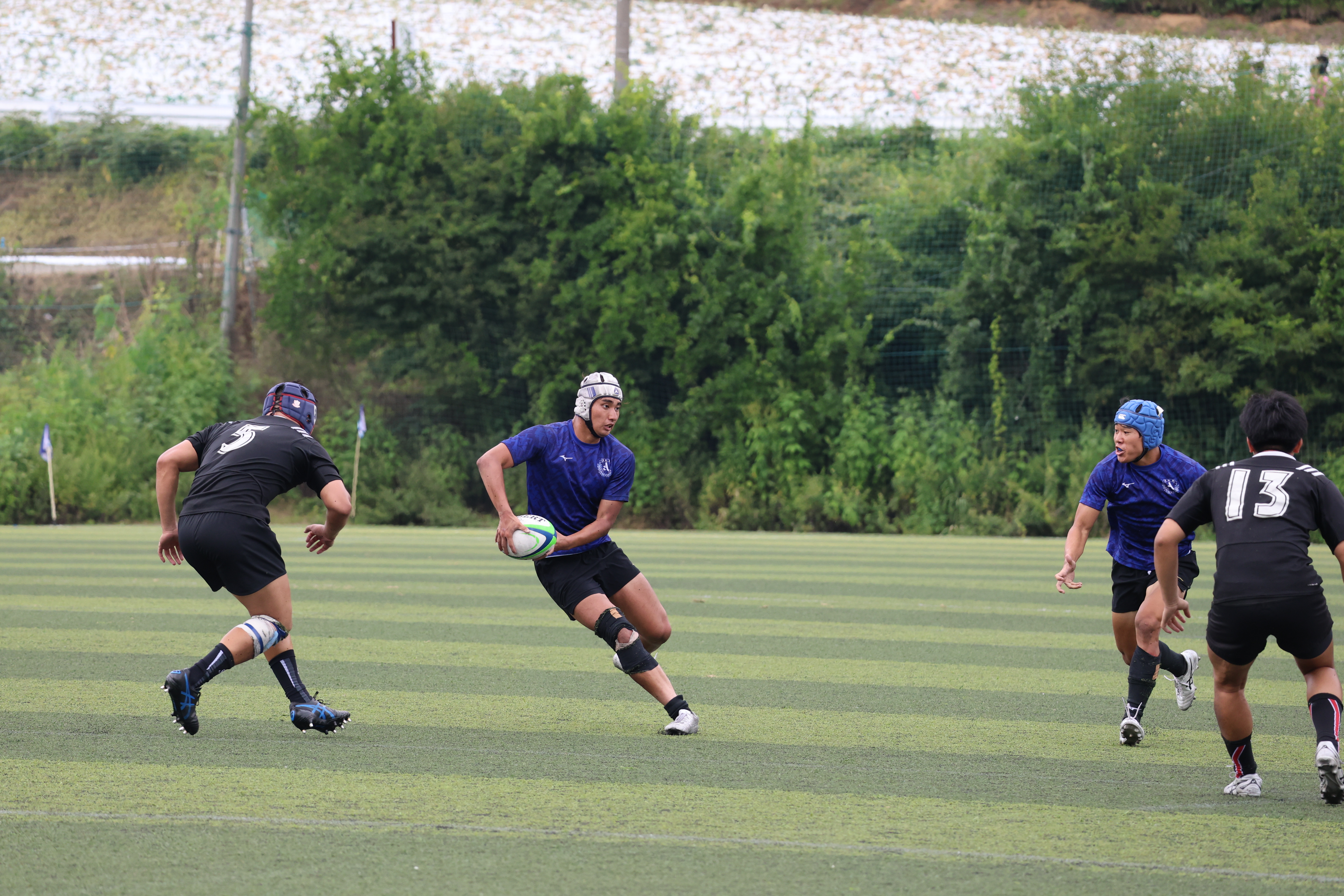 後半、2年三田元気と1年藤田武蔵の活躍によりトライを重ねリードしたまま、ラスト10分に突入するも、相手のスピードのある攻撃を抑え込めず、同点に追いつかれ、そのままノーサイドを迎えました。