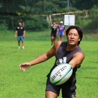 普段、ラグビーボールでリフティングする機会はあまりないので、私の記録は2回で終わってしまいました。