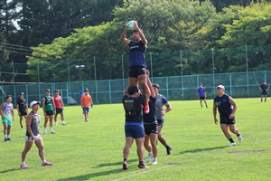 FWはセットプレーでの精度を高めるために繰り返し動きを確認し、声を掛け合いながら強度の高い練習に取り組みました。